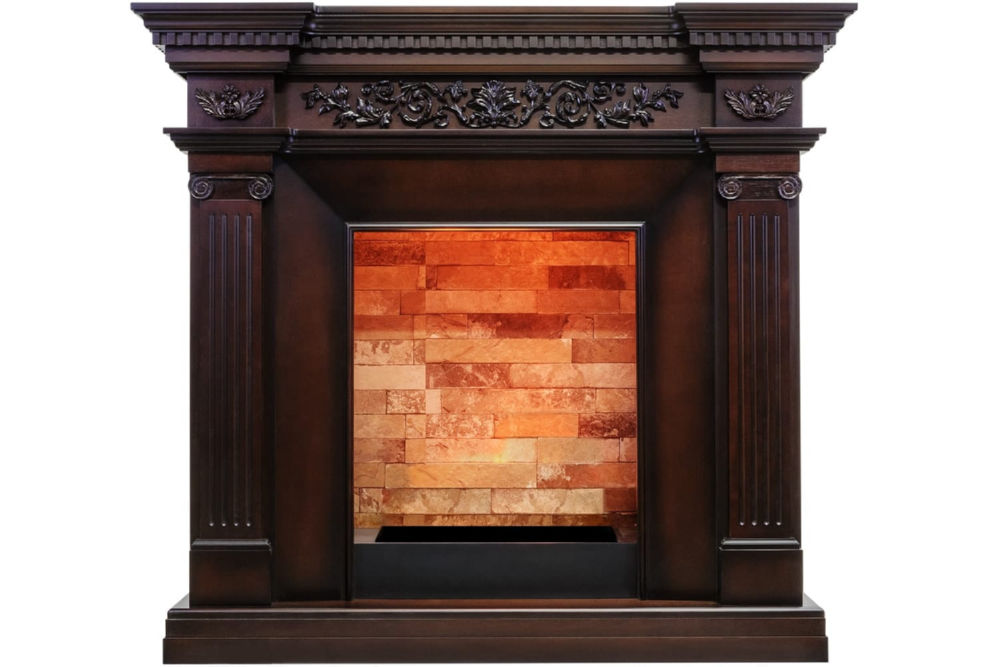 Портал Amalfi под очаг Cassette 400 выполнен в античном стиле и представлен в двух цветах – белый дуб и махагон коричневый антик.