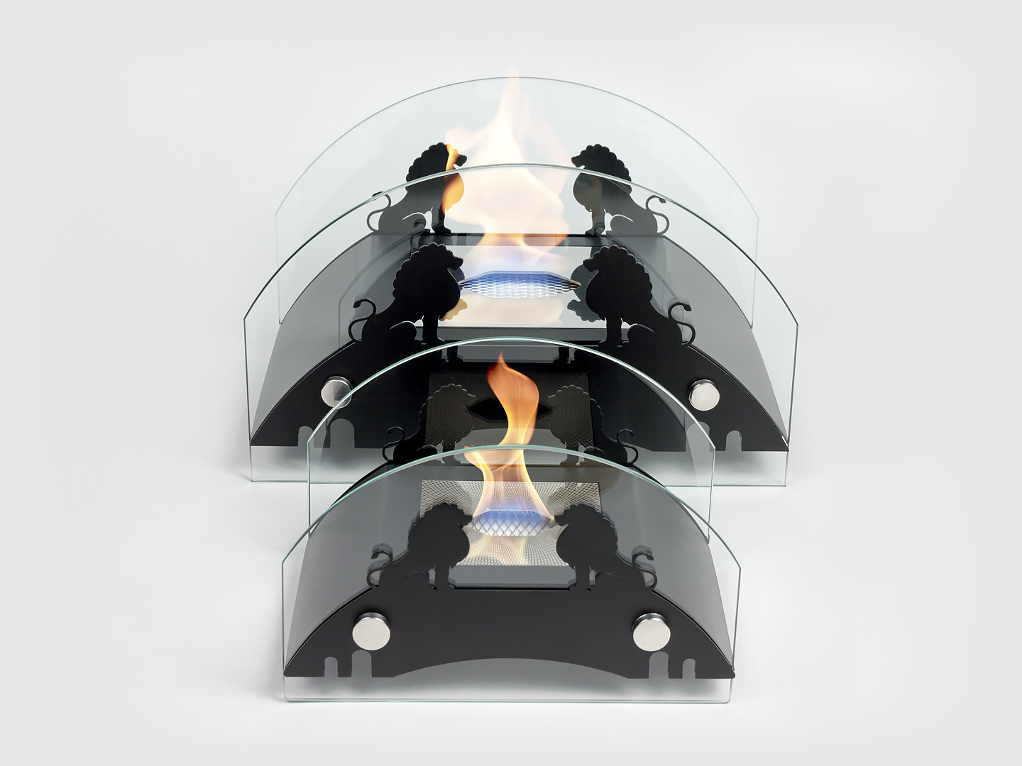 Представляет собой биокамин, который создан по мотивам мостов дореволюционной России середины ХIX-начала XX века и состоит из металлического корпуса с топливным блоком Lux Fire 100-1 огражденным с двух сторон скругленными защитными стеклами на дистанционных держателях и декоративными металлическими накладками в виде «Львов»