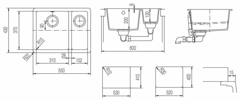 Мойка оснащена просторной основной чашей и практичной вспомогательной. Глубокая чаша позволит мыть посуду больших размеров даже с невысоким смесителем. Компактные размеры врезки мойки позволяют монтировать ее в нестандартные столешницы и в островные кухни. Идеальная гладкость поверхности чаши делает эту мойку удобной в уходе.
