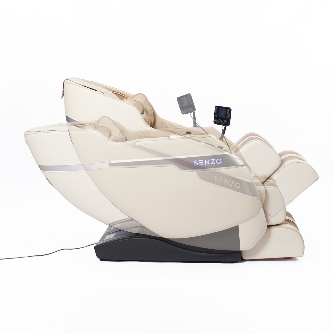 - Senzo Riko оснащено регулируемой подножкой, что позволяет пользователям ростом до 195 см настроить идеальное положение, обеспечивая комфортное использование и качественный массаж ног.