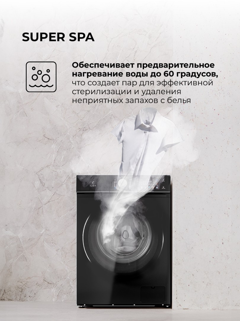 - Super Spa: программа предварительной стирки с нагревом воды до 60 градусов, обеспечивающая стерилизацию и дезодорацию белья в течение 30 минут.