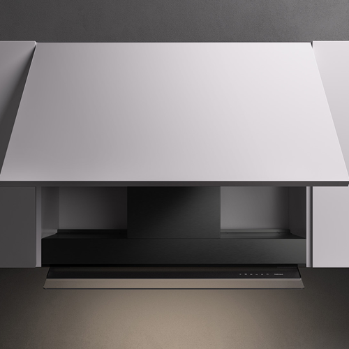Особенности модели сенсорное управление на откидном козырьке,который отсекает пар от фасада кухонного шкафа, новый тип освещения - “Dynamic Led Light”, который позволяет потребителю выбирать световую температуру в пределах от 5600 К (холодный свет) до 2700 К (тёплый свет), полированная нержавеющая сталь (AISI 304), NRS® - технология шумоподавления