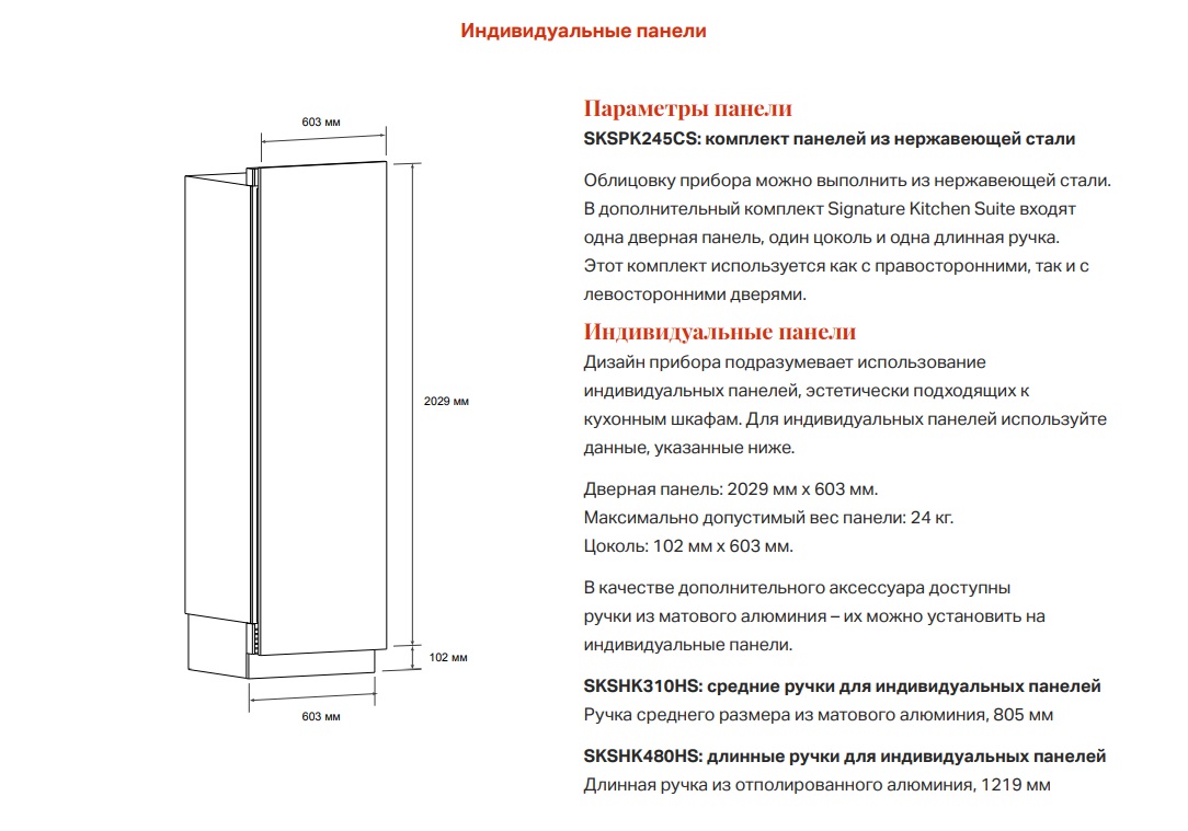 - Комплект боковых панелей при установке не заподлицо: SKSFK800CS